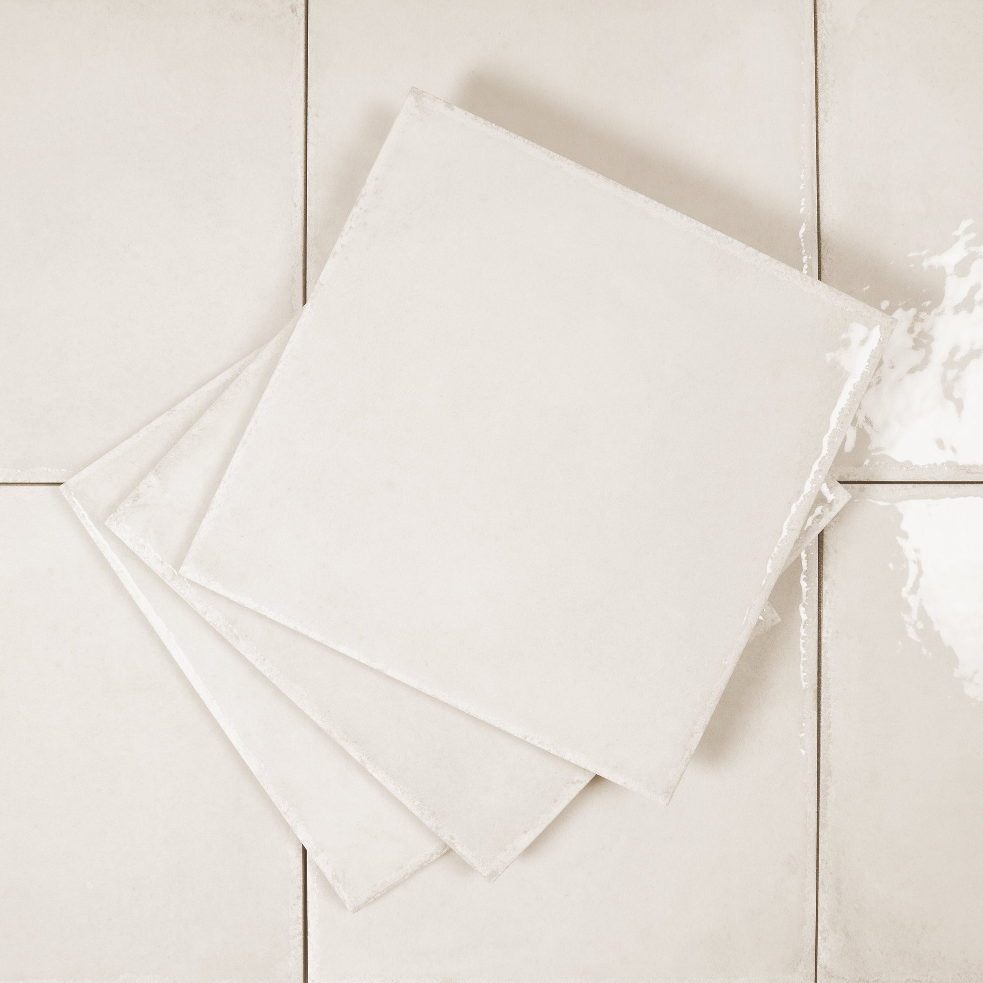 Cloud White 8x8 Glossy Porcelain Zellige Square Subway Tile